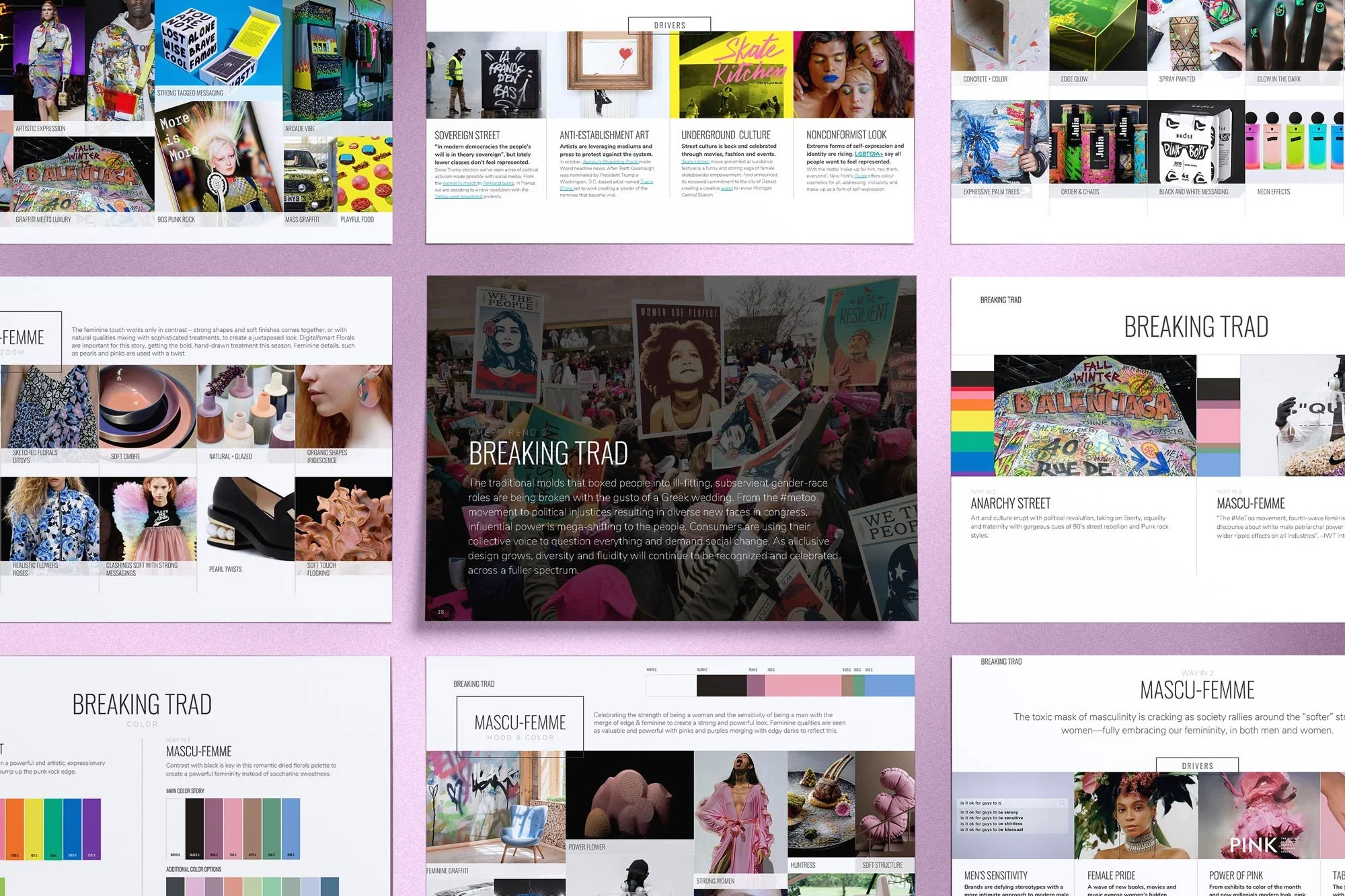 Without sharing our secret sauce, what I can tell you is that our research combined our macro trend methodology with additional visual research from areas such as runway, technology, trade shows, architecture, music videos and more to create a trend deck that was culturally relevant and addressed multiple deliverables.